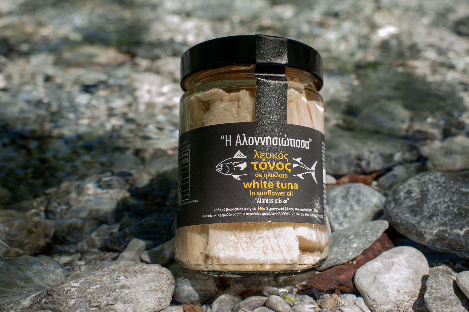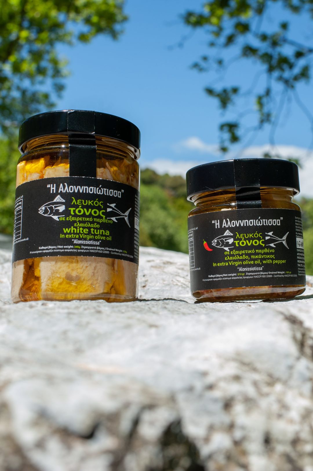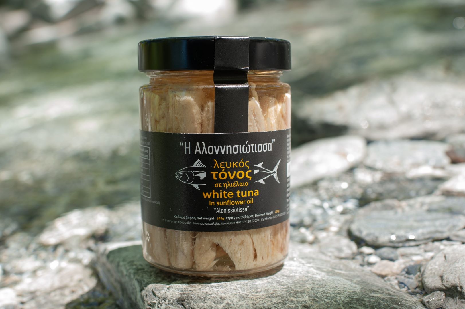 Ο Τόνος Αλοννησιώτισσα , είναι προϊόν συσκευασμένου τόνου, που ανήκει στα είδη του λευκού, ερυθρού και κιτρινόπετρου τόνου. Ο τόνος αλοννήσου θεωρείται εκλεκτό προϊόν, παγκοσμίως γνωστό για τη γεύση του και χρησιμοποιείται σε πολλές συνταγές, ακόμη και για σούσι, και μπορεί να καταναλωθεί και σκέτος. Θεωρείται δε καλύτερος από εκείνον του Ειρηνικού ή Ατλαντικού ωκεανού ή άλλων ανοιχτών θαλασσών καθώς λέγεται πως δεν περιέχει ποσότητες βαρέων μετάλλων. Το νερό της Μεσογείου δεν περιέχει μεγάλες ποσότητες υδραργύρου σε σχέση με άλλες ανοιχτές θάλασσες. Tο επιστημονικό όνομα του λευκού τόνου είναι Thunnus alalunga της οικογένειας Scombridae. Το μέγιστο βάρος του μπορεί να φτάσει τα 45 κιλά, με ανώτερο μέγεθος τα 130 εκατοστά .  Αν και μικρά σε μέγεθος το κρέας τους θεωρείται εύγευστο , είναι μαλακό και πολύ υγιεινό.