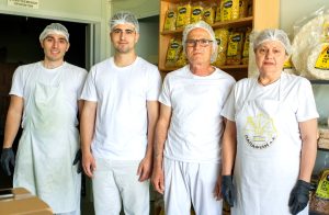 Στην υποδειγματική βιοτεχνία έμπειρες νοικοκυρές πλάθουν φυλλα για σπιτικές πίτες.