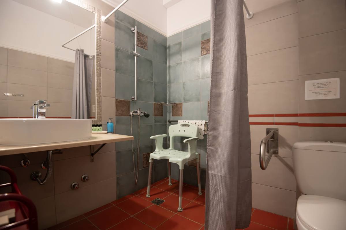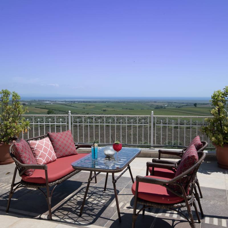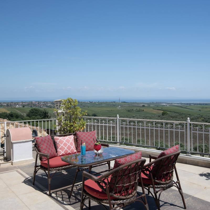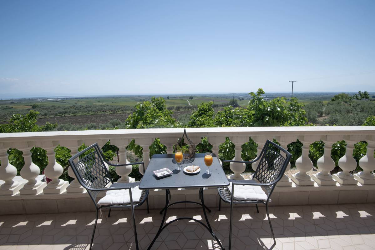 Framed by the picturesque region of Pieria, amid wine yards and olive groves – there is our wheelchair-accessible hotel Villa Sevasti. In the background, you see Mount Olympus rising into the sky proudly. A beautiful setting. A place of calm.