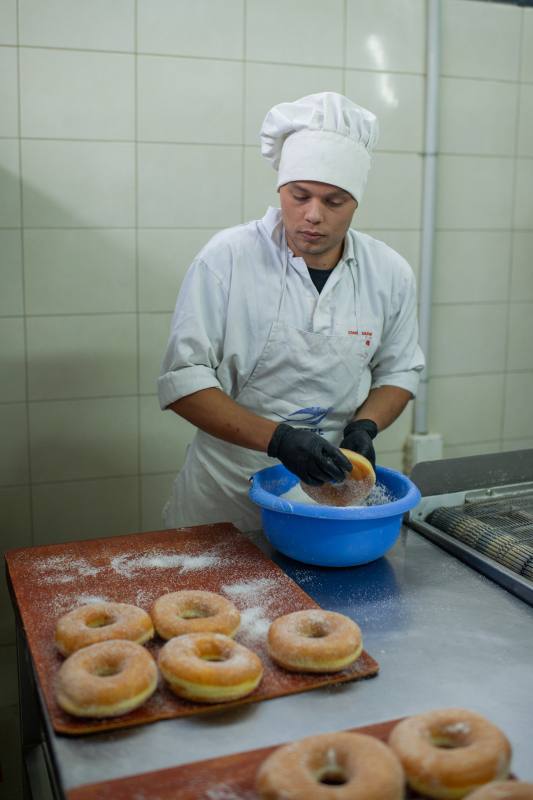 Στην επιχείρηση Donuts Megas συναντήσαμε έναν μεγάλο αριθμό άρτια καταρτισμένων εργαζομένων , που πάντα με το χαμόγελο , μας ξενάγησαν σε όλες τις διαδικασίες των εργασιών τους . Η οικογένεια Μέγα στηρίζει την τοπική κοινωνία οικονομικά προσφέροντας προσλήψεις , που είναι εξίσου σημαντικό για τις δύσκολες ημέρες που διανύουμε .