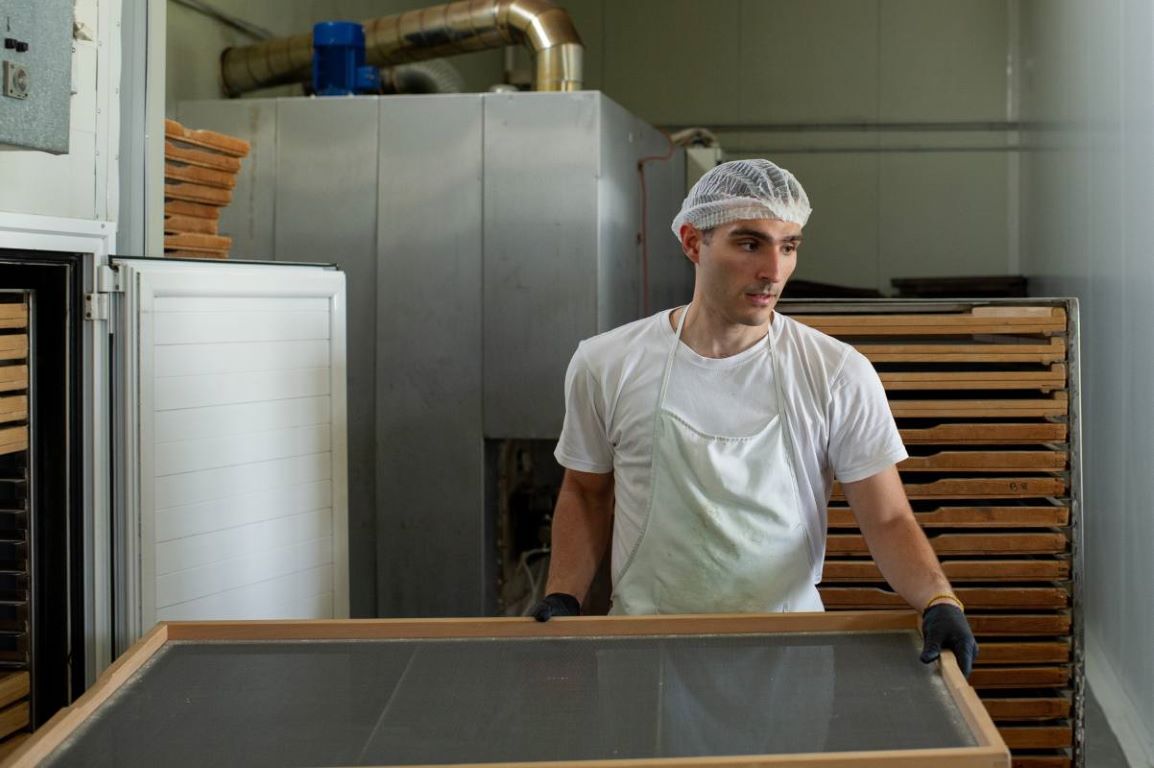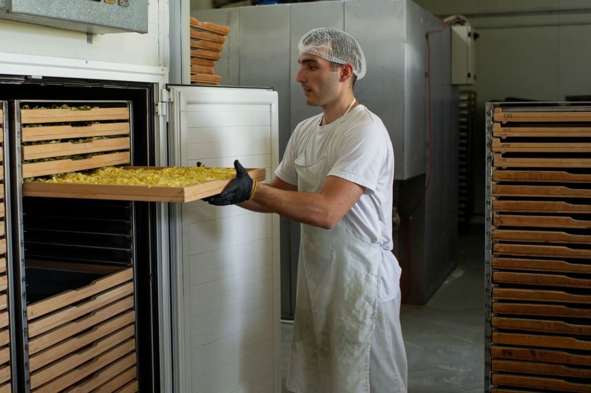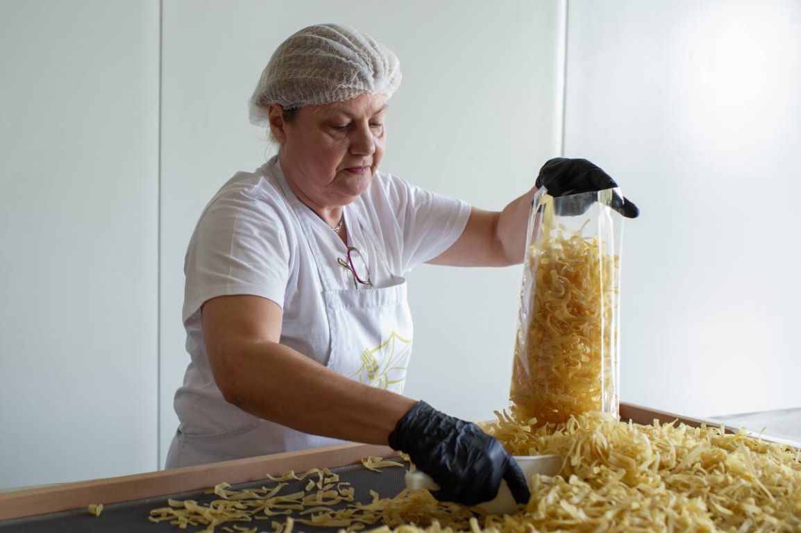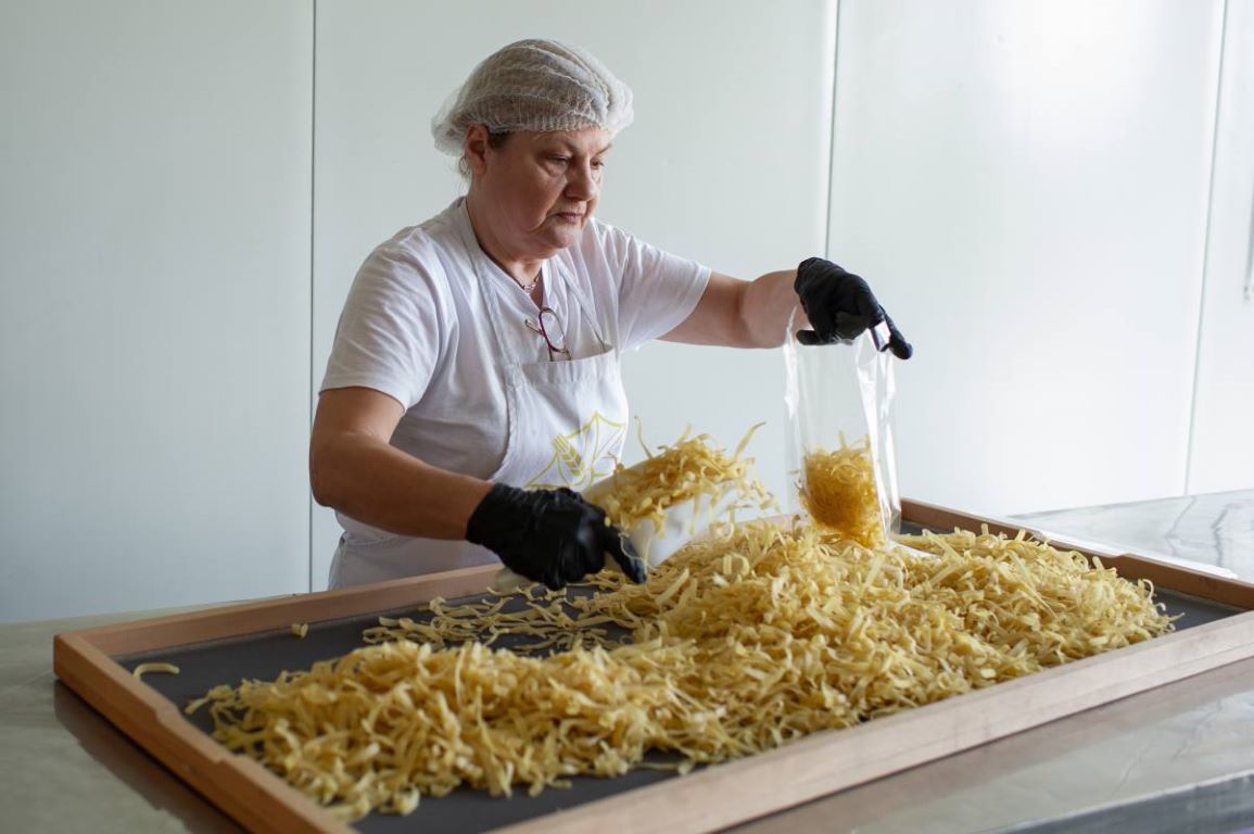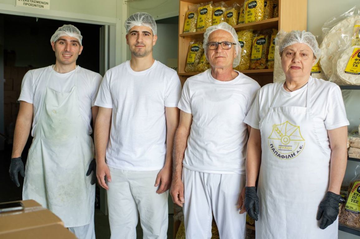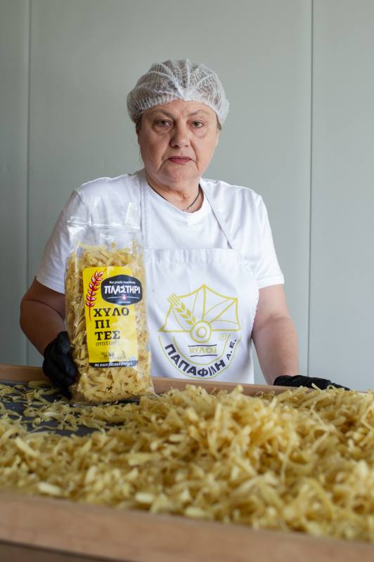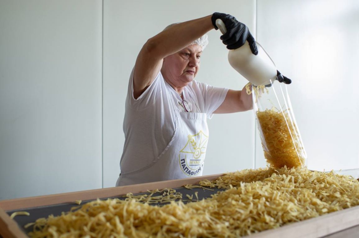 Στην υποδειγματική βιοτεχνία έμπειρες νοικοκυρές πλάθουν φυλλα για σπιτικές πίτες.