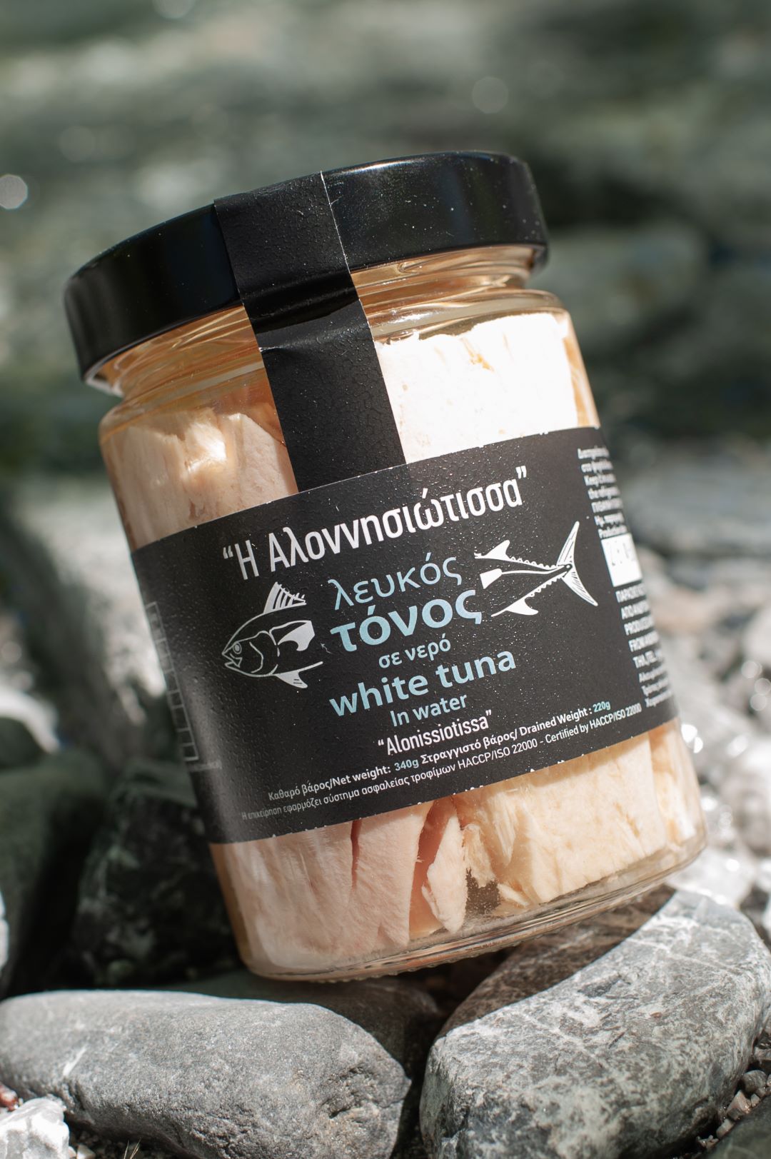 Ο Τόνος Αλοννησιώτισσα , είναι προϊόν συσκευασμένου τόνου, που ανήκει στα είδη του λευκού, ερυθρού και κιτρινόπετρου τόνου. Ο τόνος αλοννήσου θεωρείται εκλεκτό προϊόν, παγκοσμίως γνωστό για τη γεύση του και χρησιμοποιείται σε πολλές συνταγές, ακόμη και για σούσι, και μπορεί να καταναλωθεί και σκέτος. Θεωρείται δε καλύτερος από εκείνον του Ειρηνικού ή Ατλαντικού ωκεανού ή άλλων ανοιχτών θαλασσών καθώς λέγεται πως δεν περιέχει ποσότητες βαρέων μετάλλων. Το νερό της Μεσογείου δεν περιέχει μεγάλες ποσότητες υδραργύρου σε σχέση με άλλες ανοιχτές θάλασσες. Tο επιστημονικό όνομα του λευκού τόνου είναι Thunnus alalunga της οικογένειας Scombridae. Το μέγιστο βάρος του μπορεί να φτάσει τα 45 κιλά, με ανώτερο μέγεθος τα 130 εκατοστά . Αν και μικρά σε μέγεθος το κρέας τους θεωρείται εύγευστο , είναι μαλακό και πολύ υγιεινό.