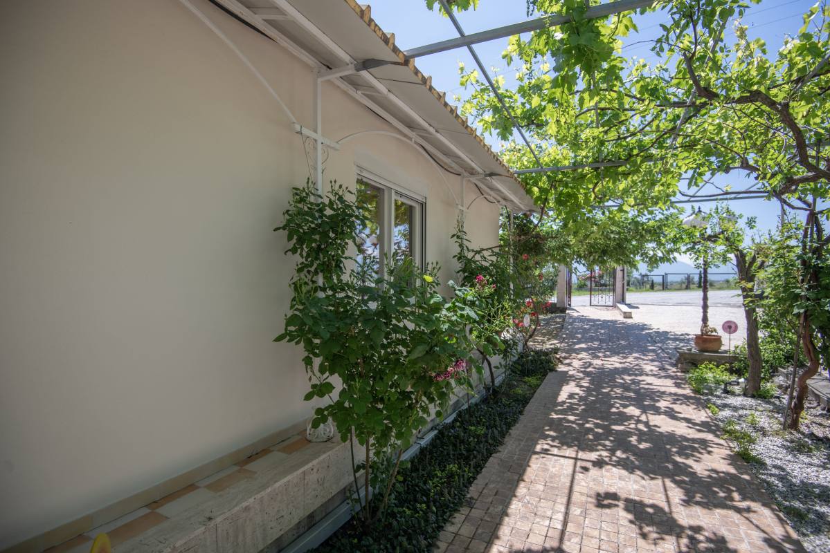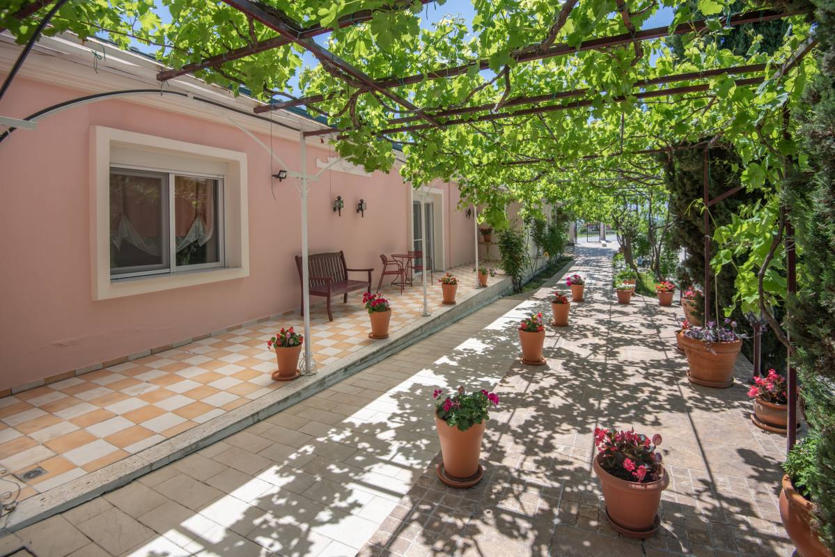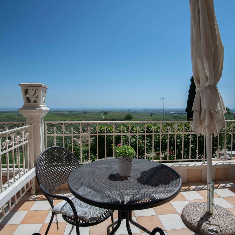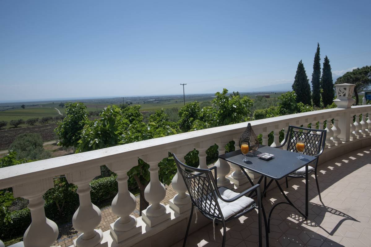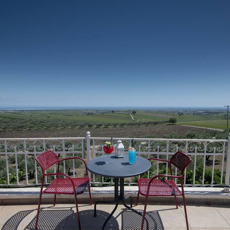 Framed by the picturesque region of Pieria, amid wine yards and olive groves – there is our wheelchair-accessible hotel Villa Sevasti. In the background, you see Mount Olympus rising into the sky proudly. A beautiful setting. A place of calm.